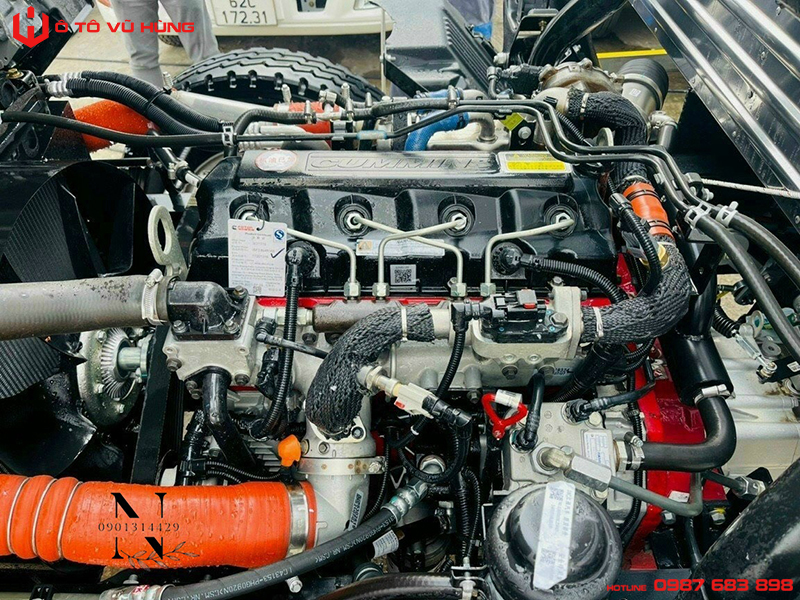 Động cơ Cummins có dung tích xi lanh là 3.760 cc, trang bị turbo tăng áp, cho công suất cực đại đạt 170 mã lực tại 2.600 vòng/phút, momen xoắn đạt 600N.m tại 1.300 vòng/phút. Nhờ vậy giúp động cơ chạy êm, không gây ra tiếng ồn lớn làm ảnh hưởng tới việc tập trung lái xe của tài xế.